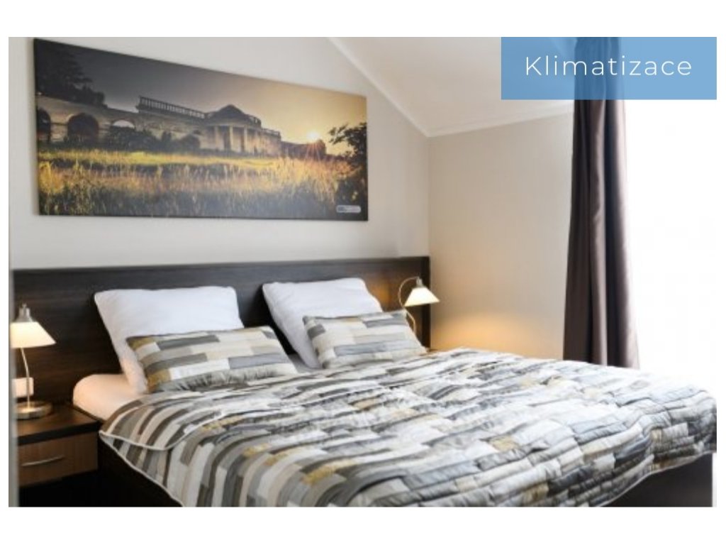 Pokoj je vybaven manželskou postelí a jedním samostatným lůžkem, sociálním zázemím (sprchový kout, toaleta), stylovým nábytkem, televizí, lednicí a wi-fi.
