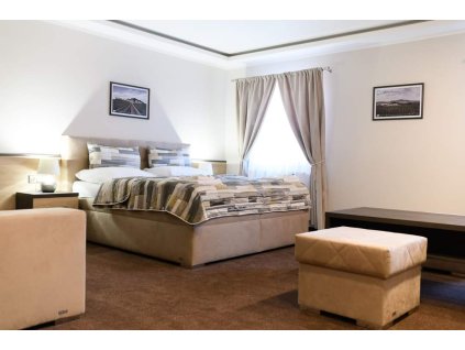 Apartmán je vybaven manželskou postelí a dvěma samostatnými lůžky, sociálním zázemím (sprchový kout, vířivá vana, toaleta) stylovým nábytkem, sedací soupravou, lednicí, televizí, wi-fi připojením a klimatizací..